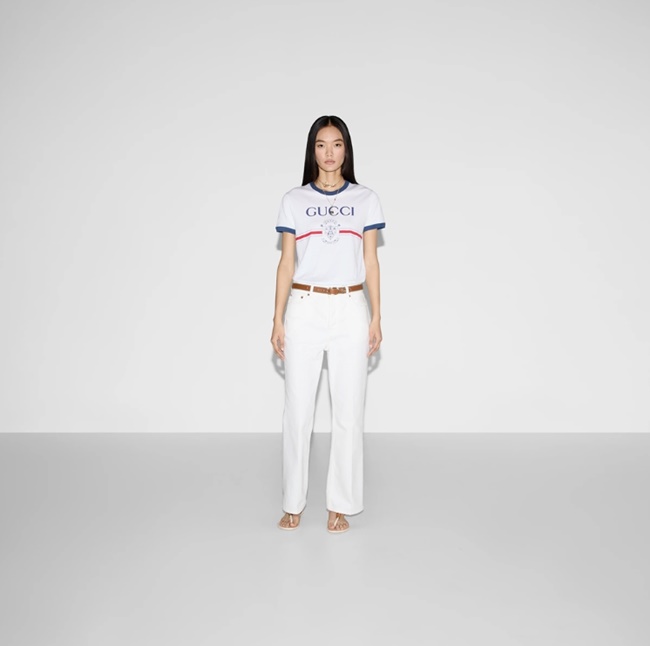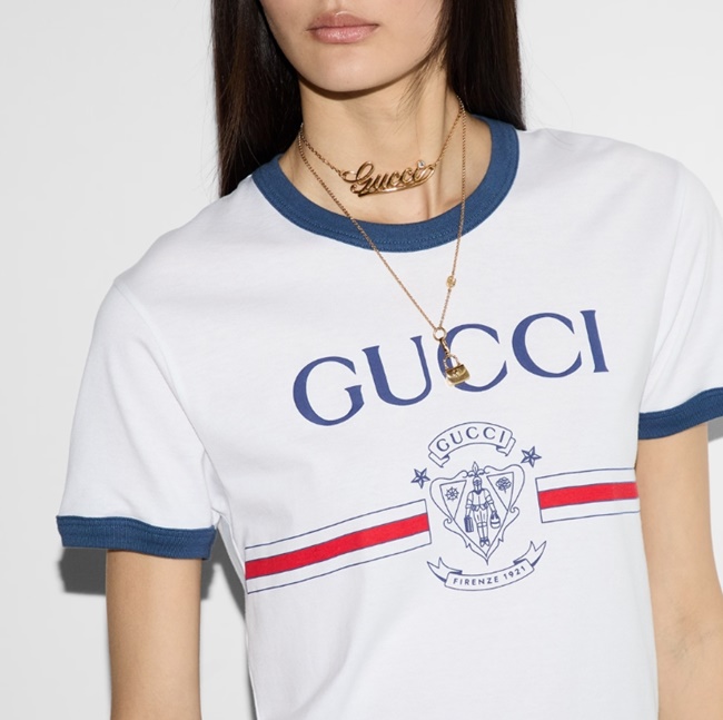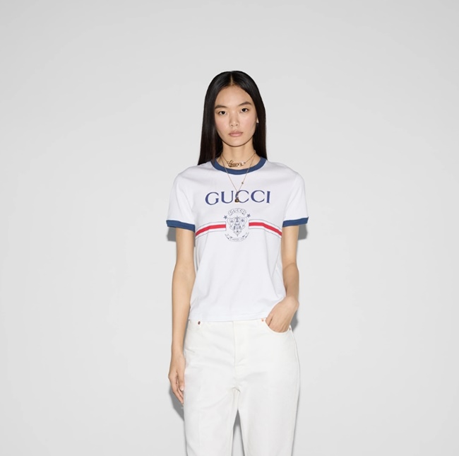 구찌 프린트 디테일의 코튼 저지 티셔츠