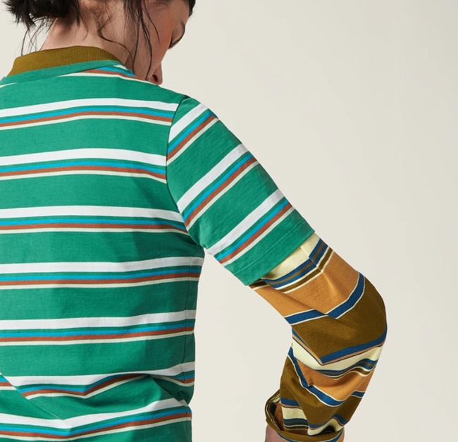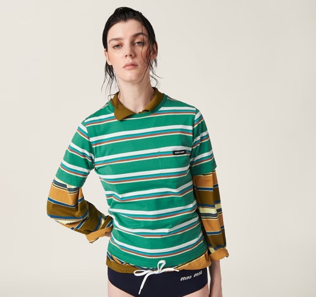 미우 미우 스트라이프 코튼 반팔 티셔츠
