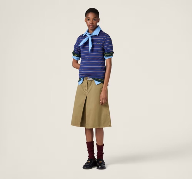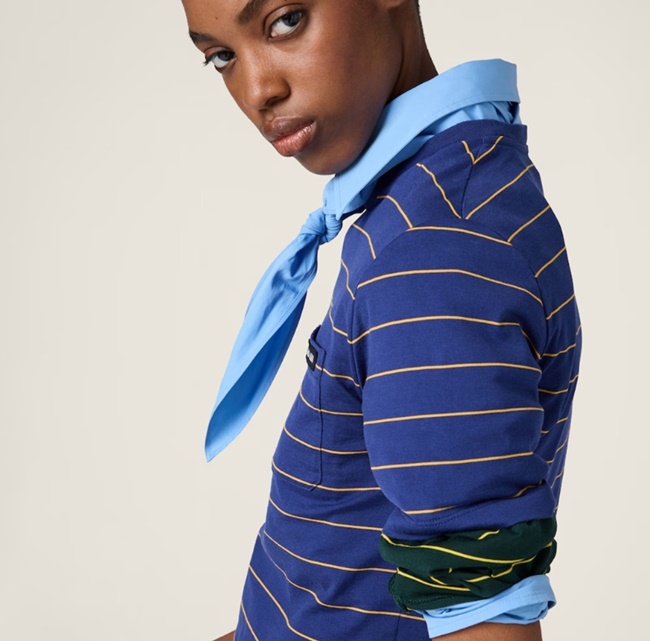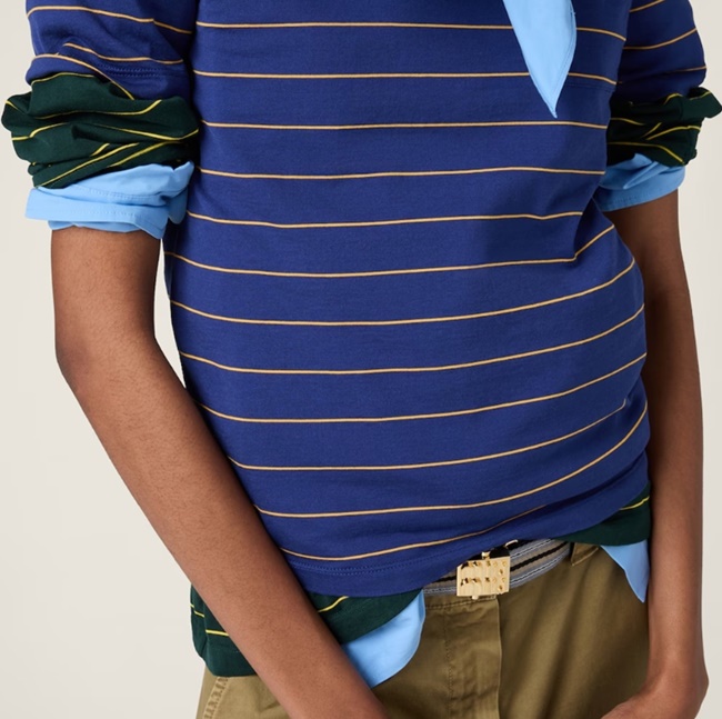 미우 미우 스트라이프 코튼 저지 티셔츠