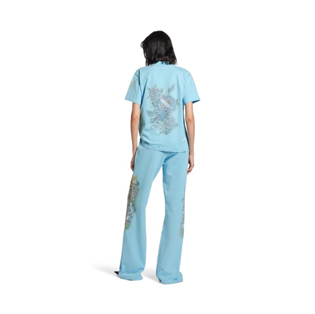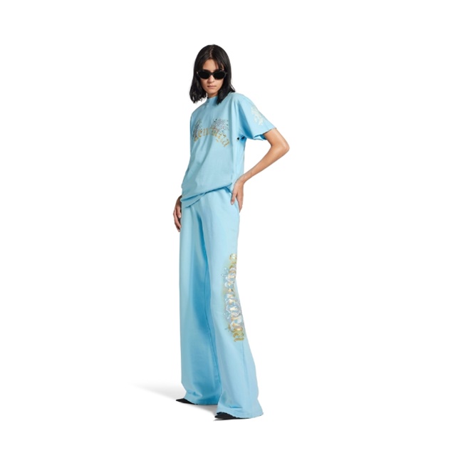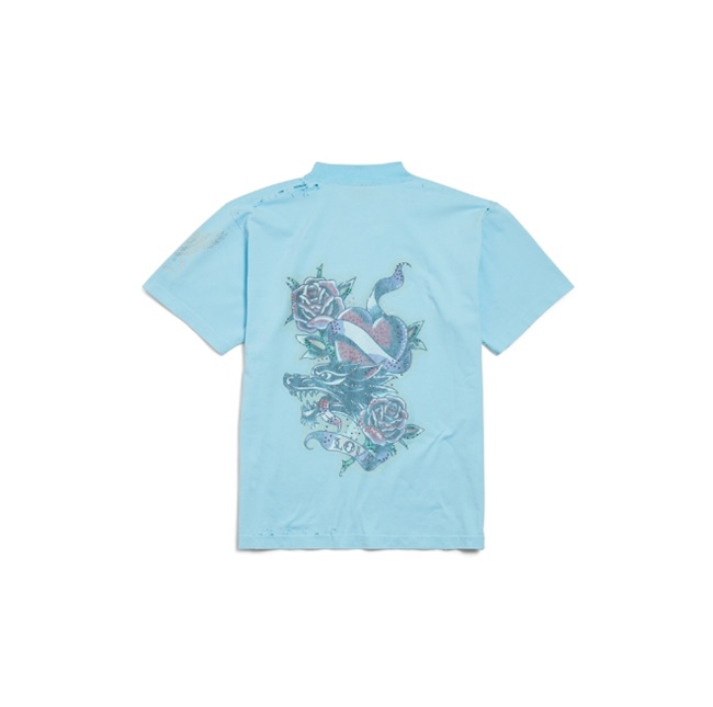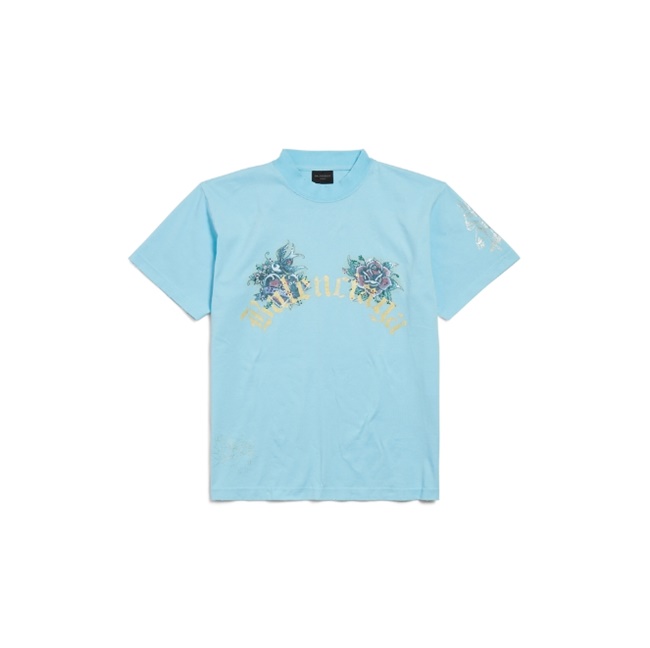 발렌시아가 태키 타투 스몰 핏 티셔츠 라이트 블루