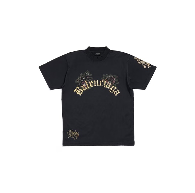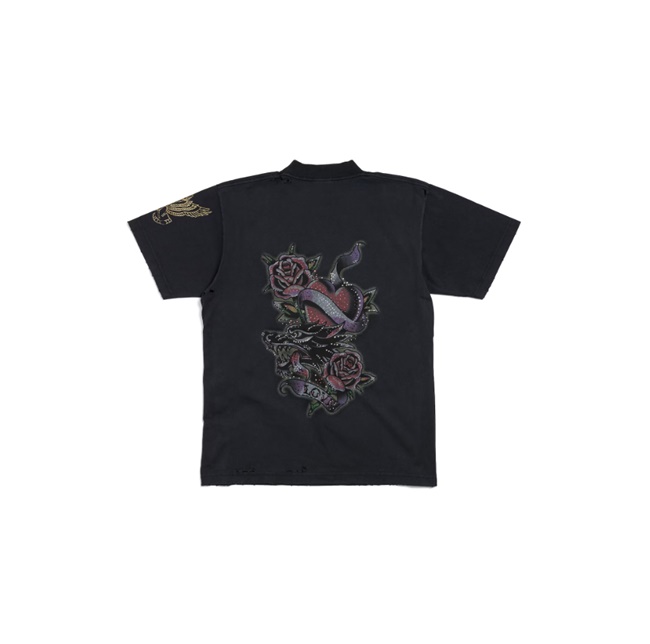 발렌시아가 태키 타투 스몰 핏 티셔츠 페이드 블랙