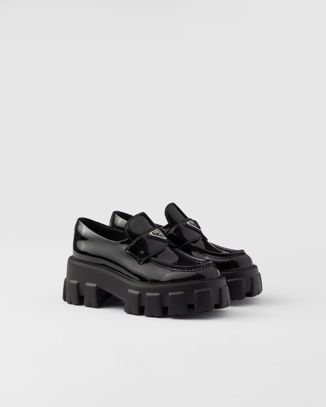 프라다 모놀리스 페이턴트 가죽 로퍼
