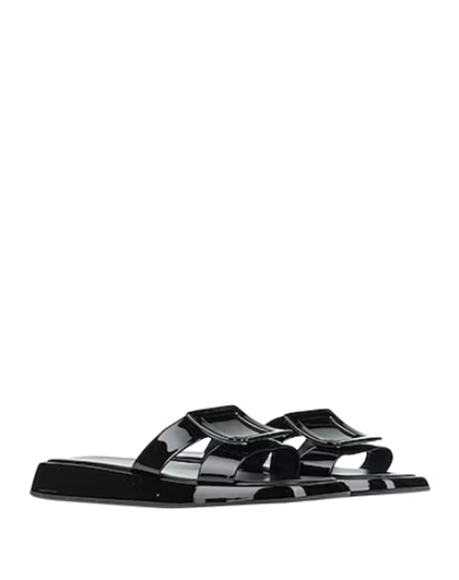 로저 비비에 슬라이드 커버드 버클 뮬 페이턴트 레더 블랙