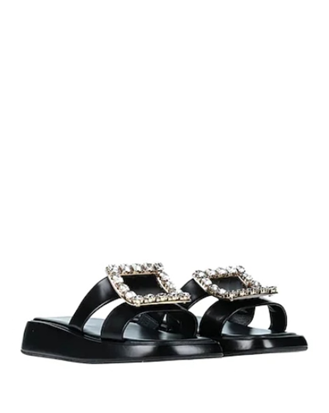 로저 비비에 슬라이드 스트라스 버클 뮬 레더 블랙