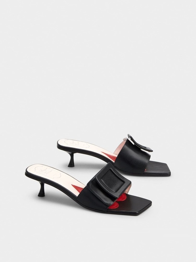 로저 비비에 커버드 버클 뮬 페이턴트 레더 블랙