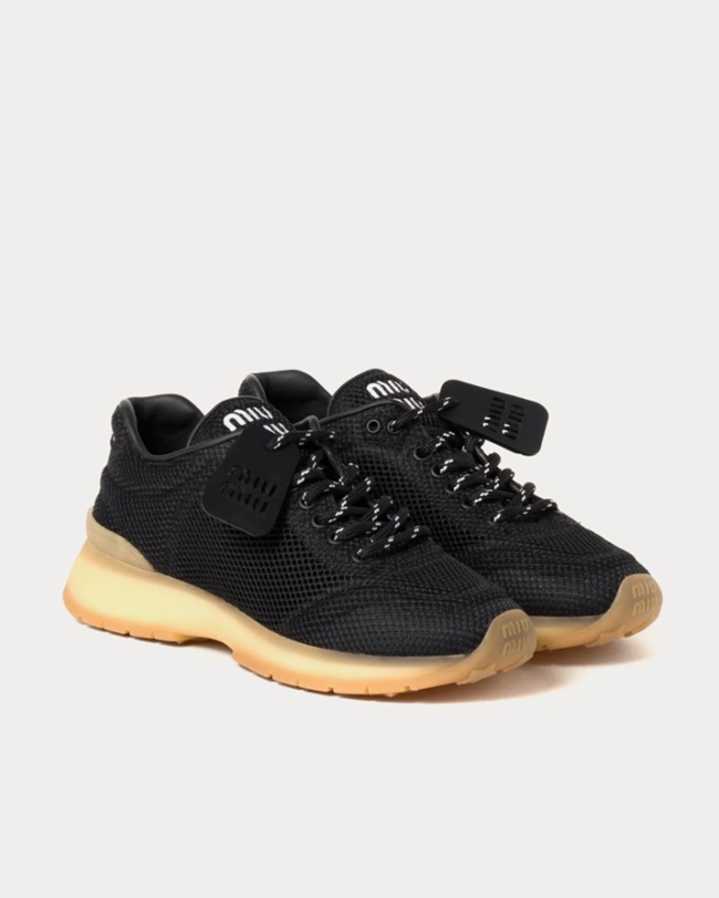 미우미우 로고 패브릭 로우탑 스니커즈 블랙