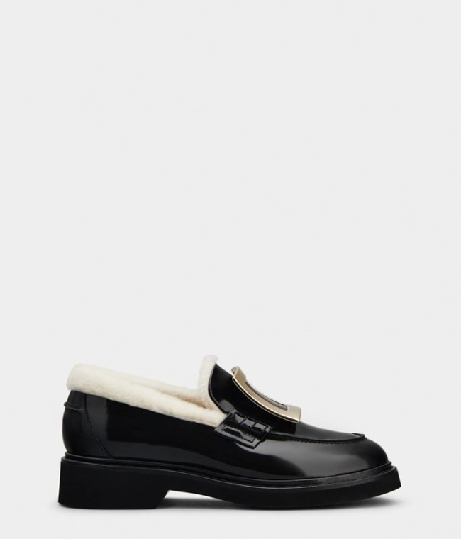 로저 비비에 비브 레인저스 메탈 버클 퍼 로퍼 페이턴트 레더 블랙