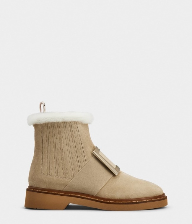 로저 비비에 메탈 스퀘어 스웨이드 앵클 부츠 브라운