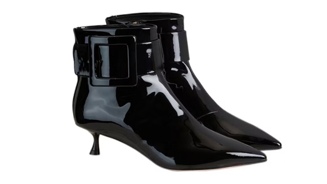 로저 비비에 포인티 커버드 버클 앵클 부츠 페이턴트 레더 블랙