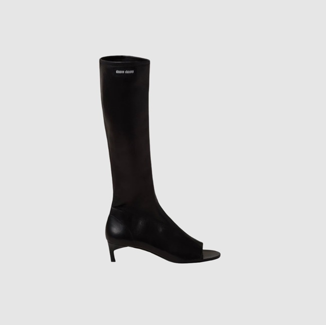 미우미우 스트레치 나파 레더 오픈토 부츠 블랙