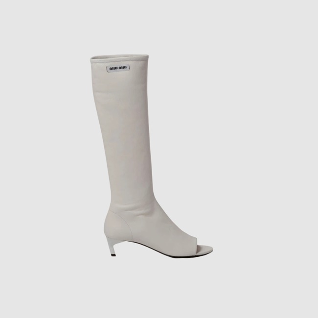 미우미우 스트레치 나파 레더 오픈토 부츠 화이트