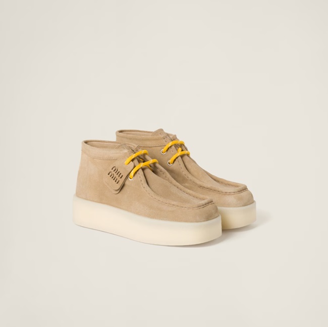 미우미우 스웨이드 델라베 웨지 앵클 부츠 에크루