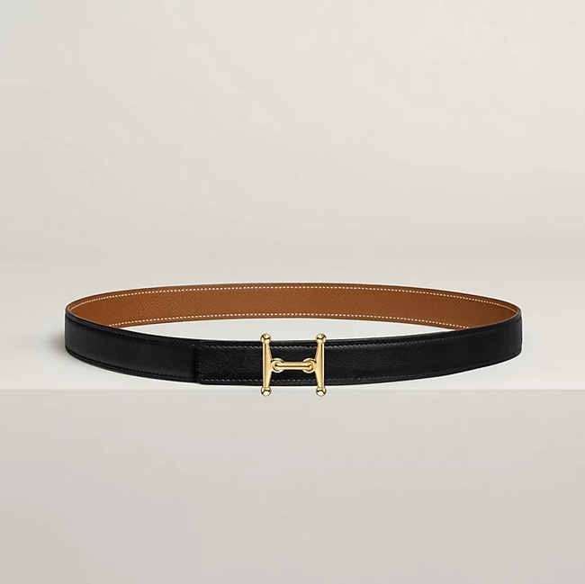 에르메스 Mors H 벨트 버클 & 리버서블 가죽 스트랩 24mm 누아 골드