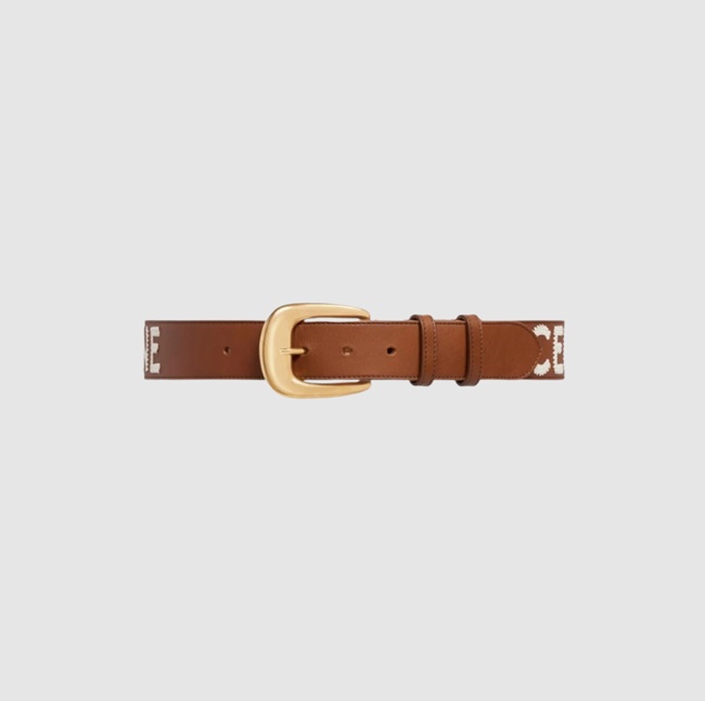 셀린느 라지 웨스턴 자수 벨트 빈티지 카프스킨 카멜