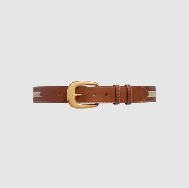 셀린느 라지 트리옹프 자수 빈티지 카프스킨 웨스턴 벨트 카멜