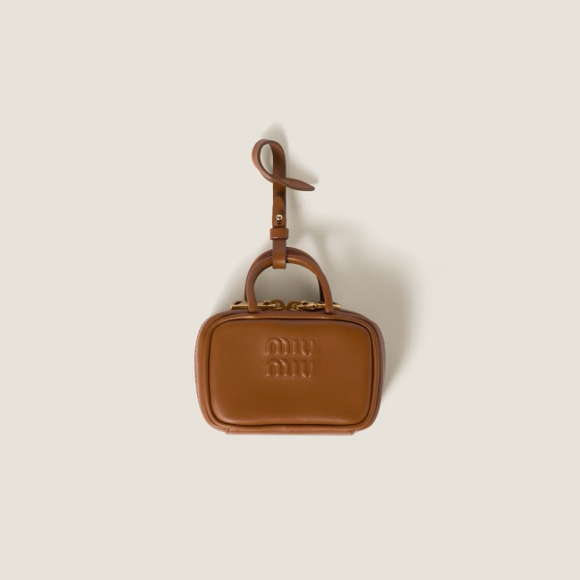 미우 미우 가죽 마이크로 보 백 코냑 5NR036