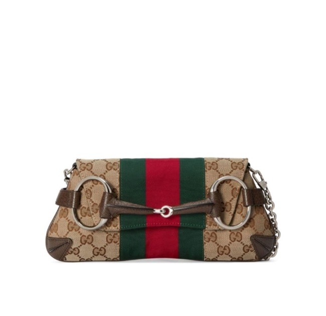 구찌 홀스빗 체인 스몰 숄더백 베이지 에보니 GG 캔버스