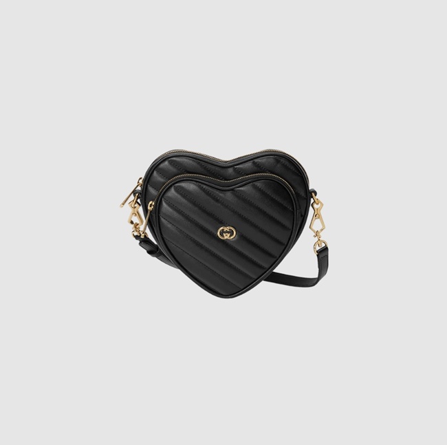 구찌 인터로킹 G 미니 하트 숄더백 블랙 레더