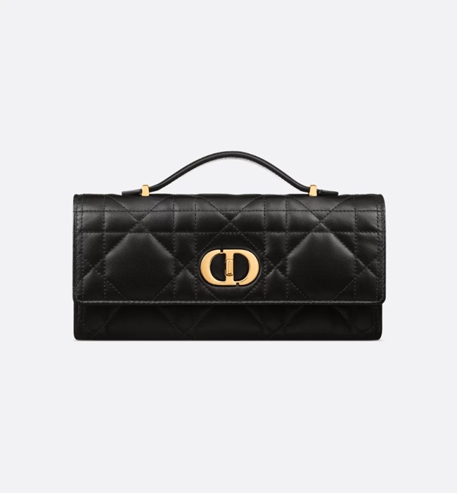 디올 Miss Caro 탑 핸들 파우치 블랙 매크로까나쥬 양가죽