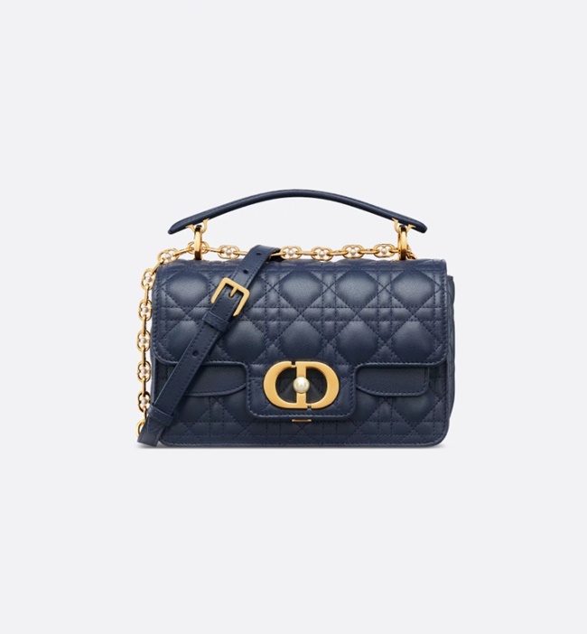 디올 Dior Jolie 스몰 탑 핸들백 딥 오션 블루 까나쥬 송아지 가죽