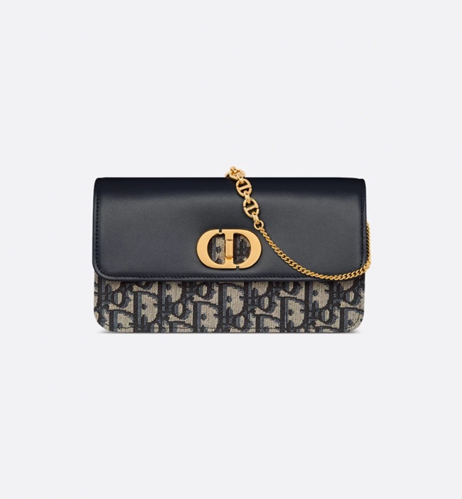 디올 Miss Caro 체인 파우치 블루 Dior Oblique 자카드 & 스무스 송아지 가죽