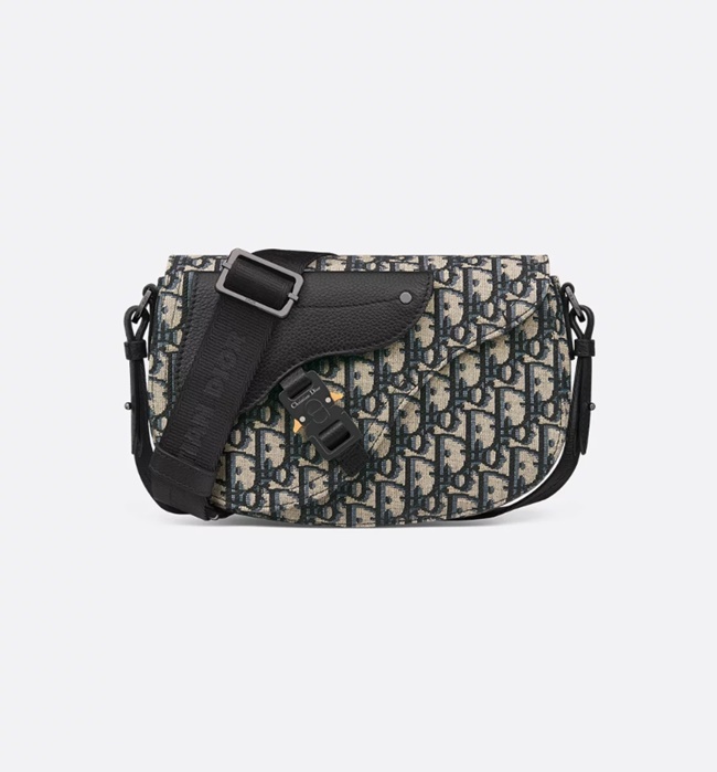 디올 새들 메신저백 디올 오플리크 자카드 그레인드 카프스킨 베이지 블랙