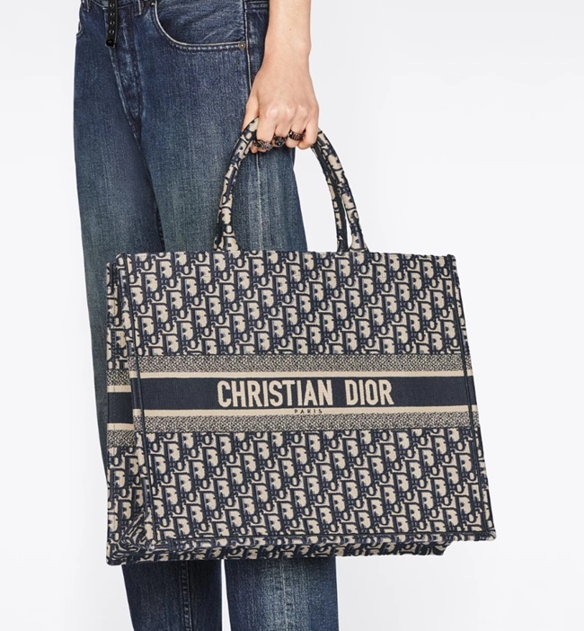 디올 Dior Book Tote 라지 백 에크루 블루 Dior Oblique 자수