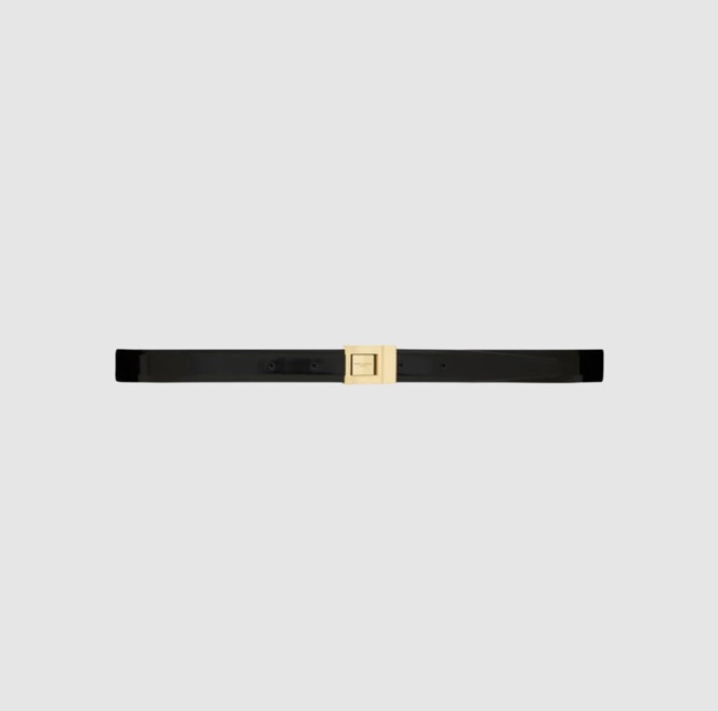 생로랑 메일 버클 씬 벨트 브러쉬드 레더 블랙