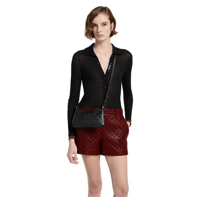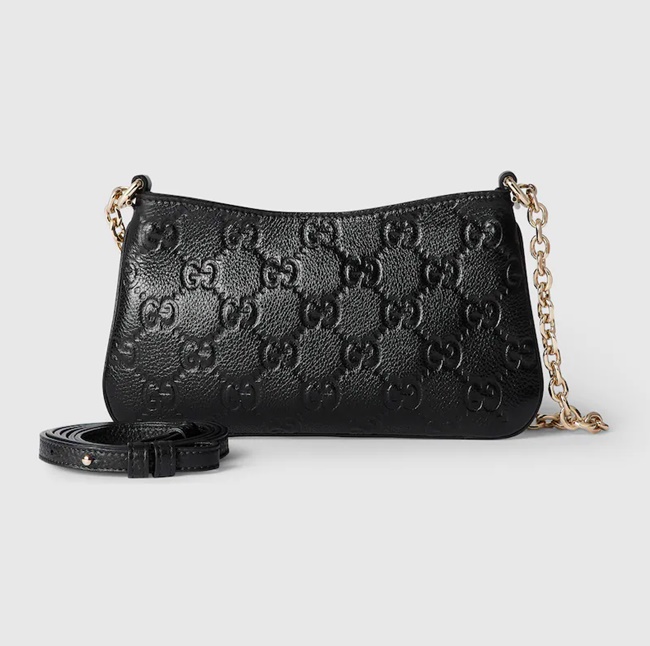 구찌 GG 엠블럼 슈퍼 미니백 블랙 그레이니 레더 815278