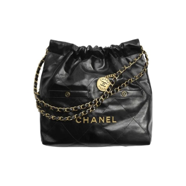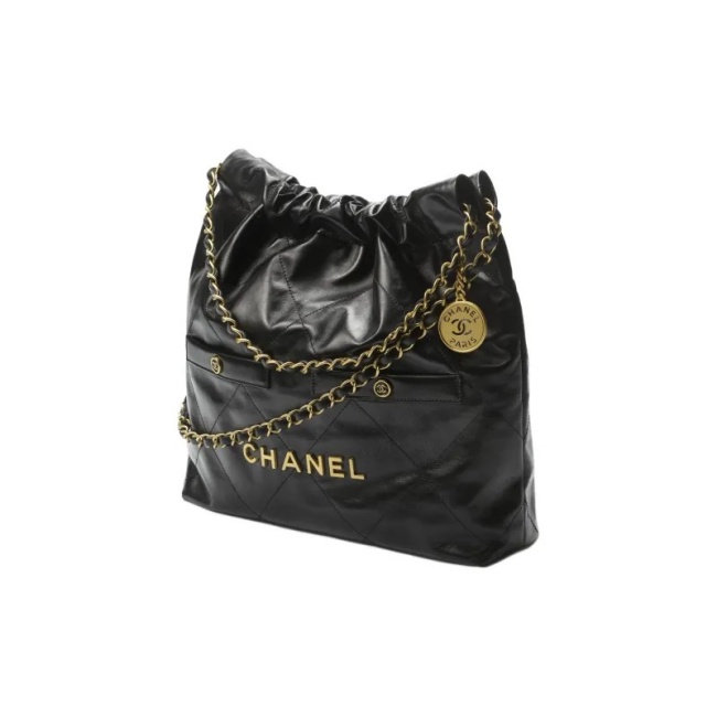 샤넬 22 스몰 핸드백 샤이니 카프스킨 & 골드 메탈 블랙 AS3260 (正品皮)