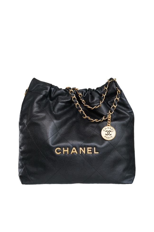 샤넬 22 스몰 핸드백 그레인드 카프스킨 & 골드 메탈 블랙 AS3260 (正品皮)