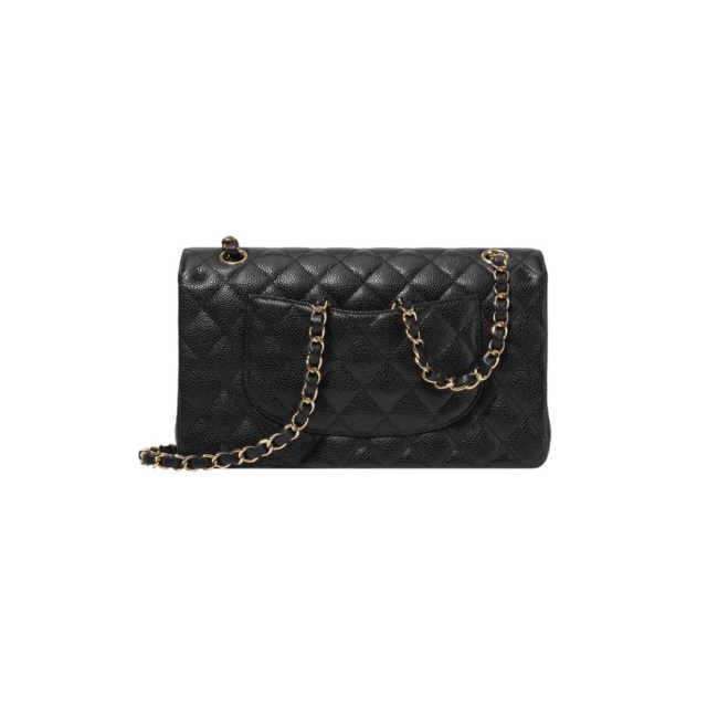 샤넬 클래식 미디움 플랩백 그레인드 카프스킨 & 골드 메탈 블랙 A01112 (正品皮)
