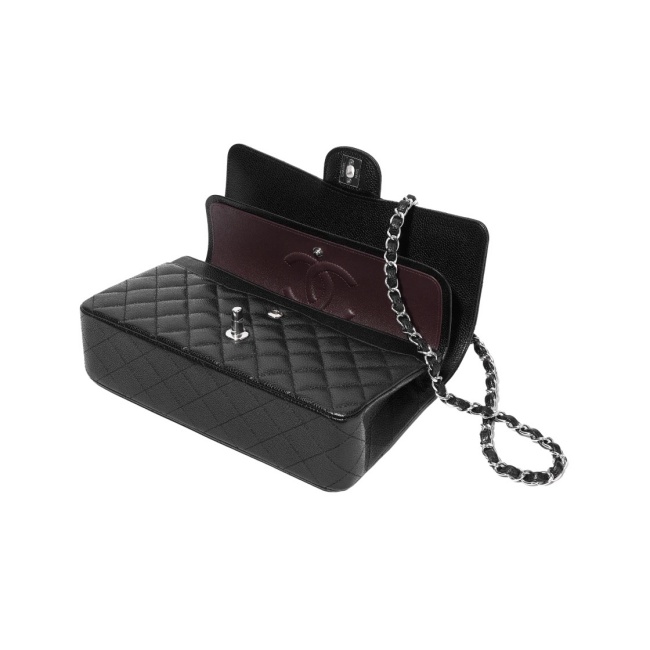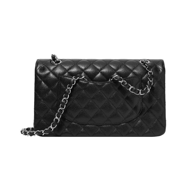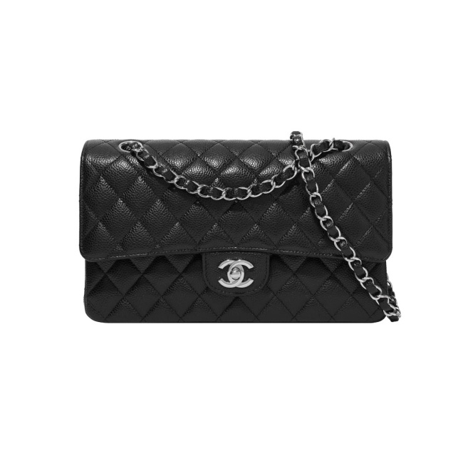 샤넬 클래식 미디움 플랩백 그레인드 카프스킨 & 실버 메탈 블랙 A01112 (正品皮)