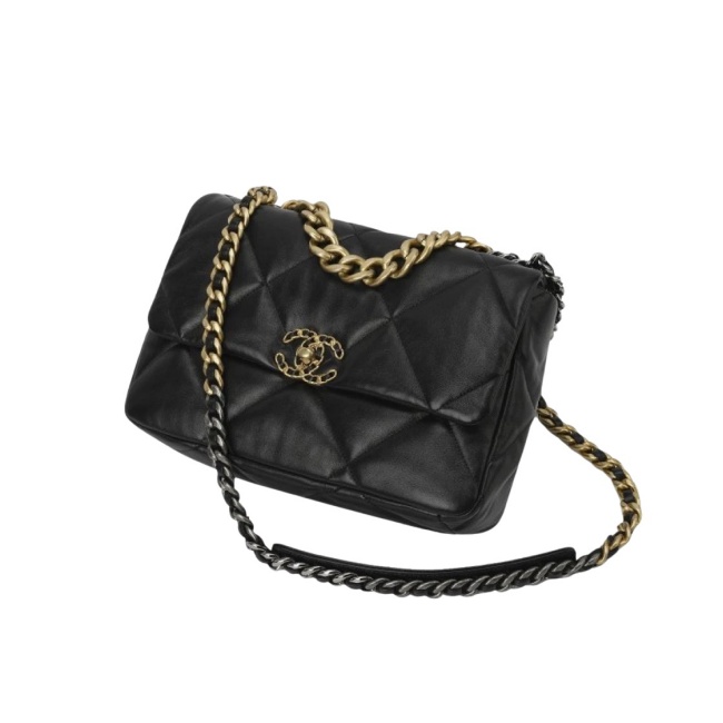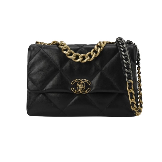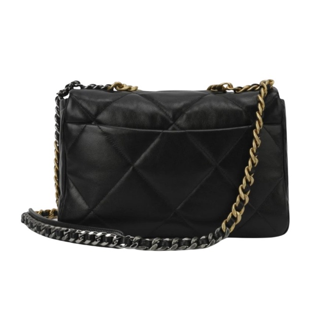 샤넬 19 라지 핸드백 램스킨 & 골드 메탈 블랙 AS1161