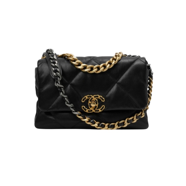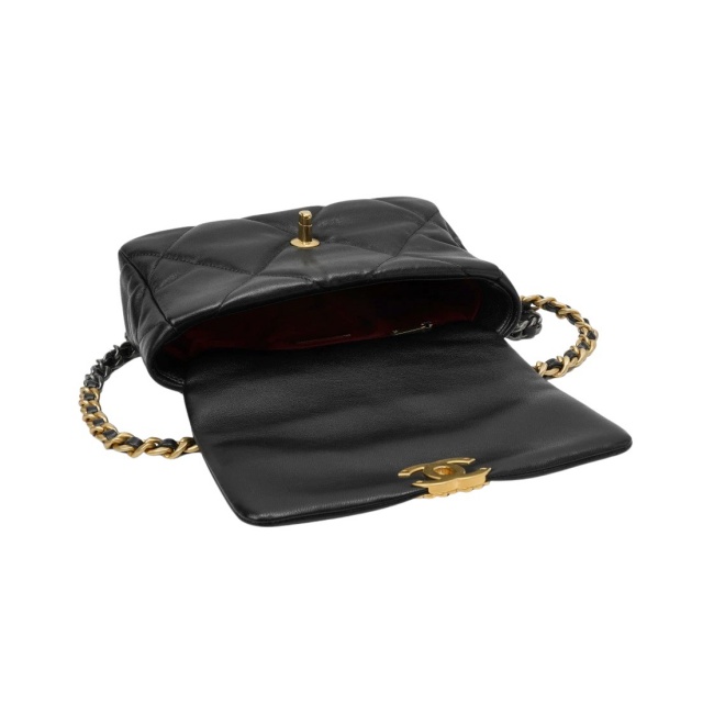 샤넬 19 미디움 핸드백 램스킨 & 골드 메탈 블랙 AS1160