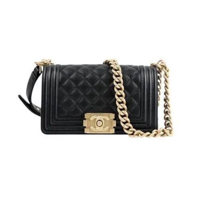샤넬 보이 샤넬 스몰 플랩백 그레인드 카프스킨 & 골드 메탈 블랙 A67085