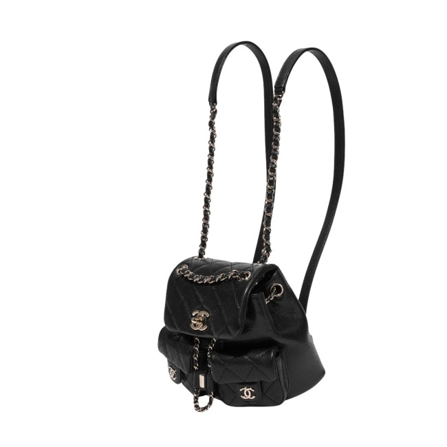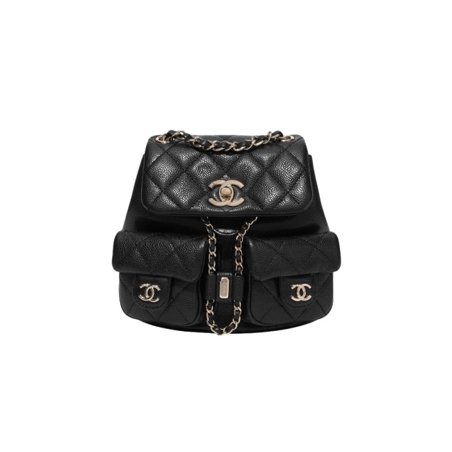 샤넬 스몰 백팩 그레인드 샤이니 카프스킨 & 골드 메탈 블랙 AS3787 (正品皮)