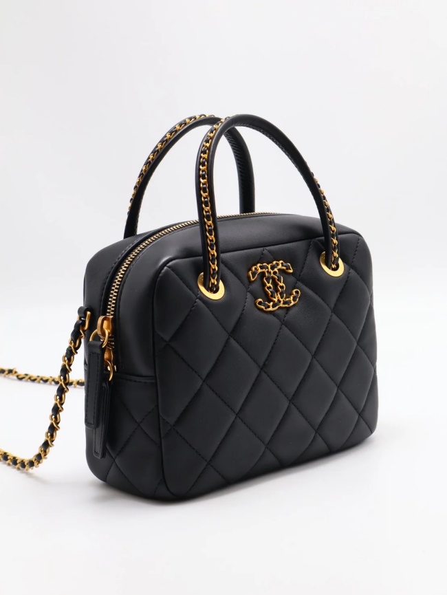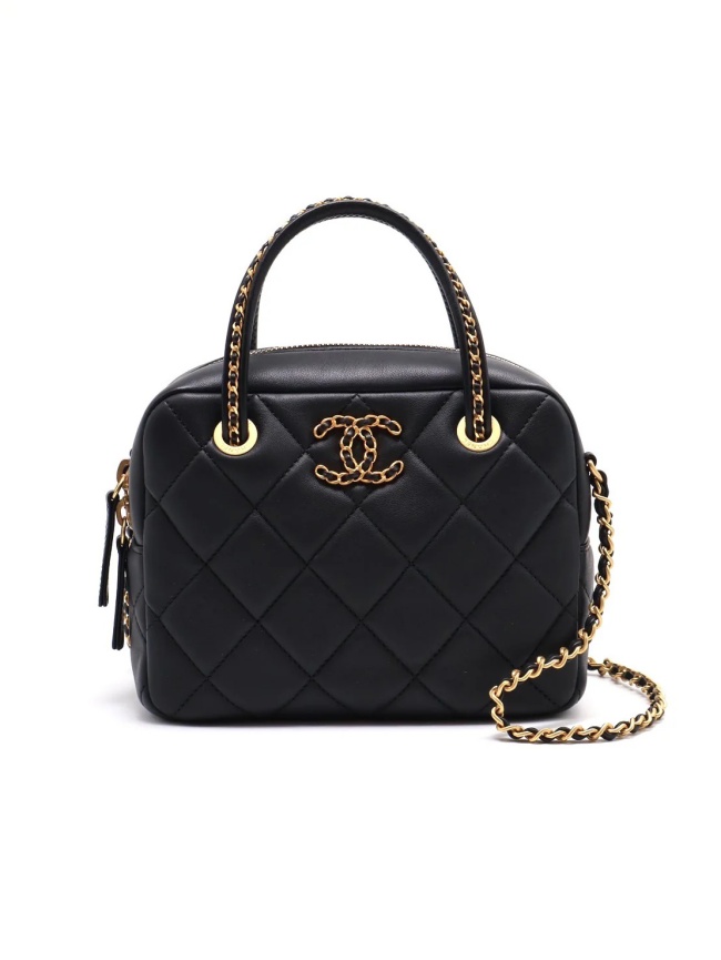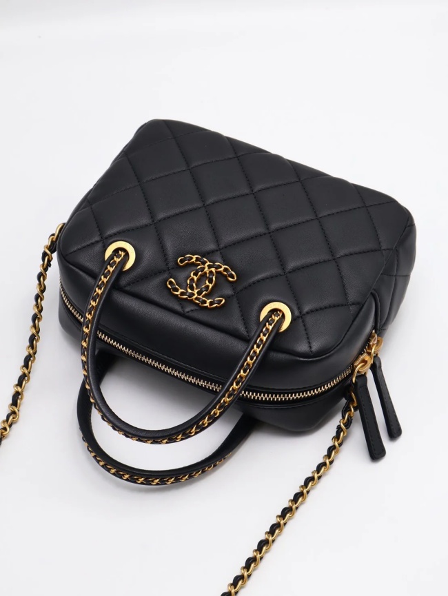 샤넬 미니 볼링백 램스킨 & 골드 메탈 블랙 AS5300