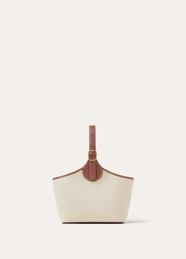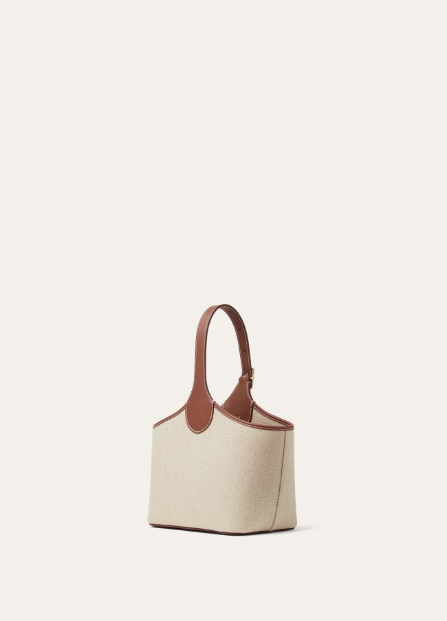 로로 피아나 코튼 리넨 보빈 버킷백 내추럴 카라멜 슈가 선 골드