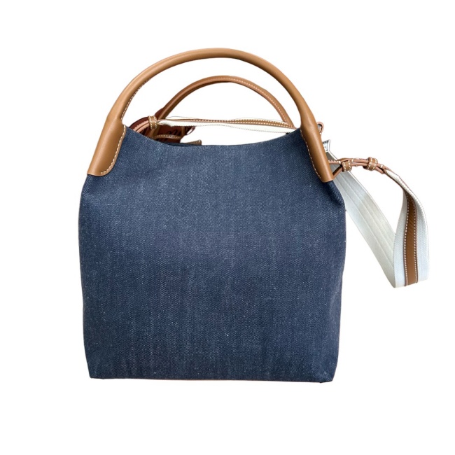 로로 피아나 데님 플라워 베일 라지 백 서지 블루 위트 브랜 앤티크 실버