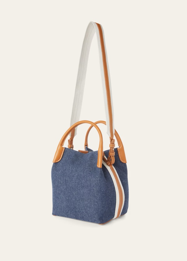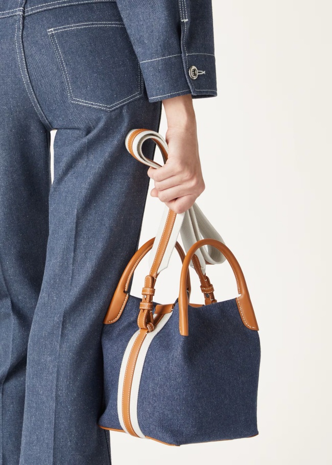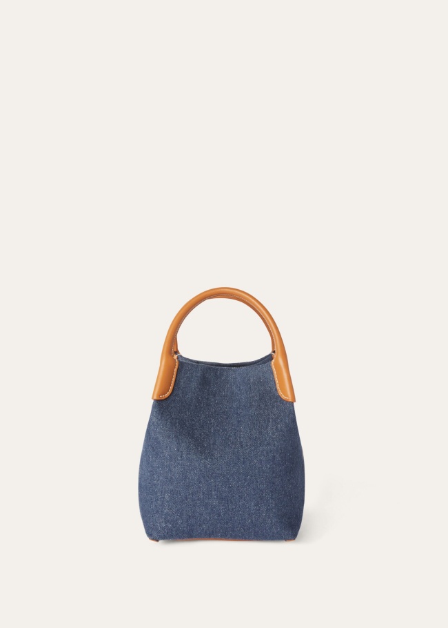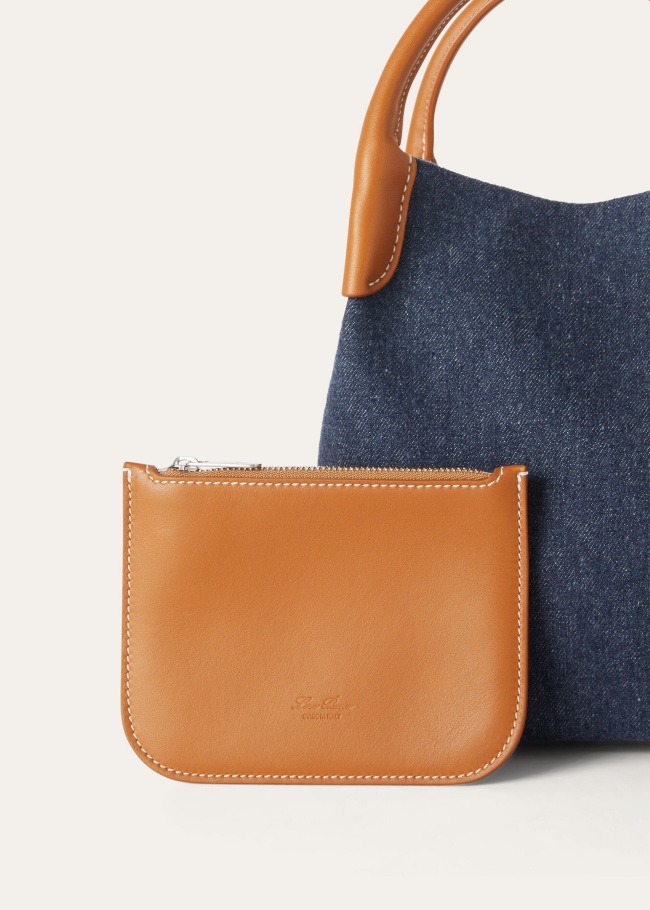 로로 피아나 데님 플라워 베일 스몰 백 서지 블루 위트 브랜 앤티크 실버