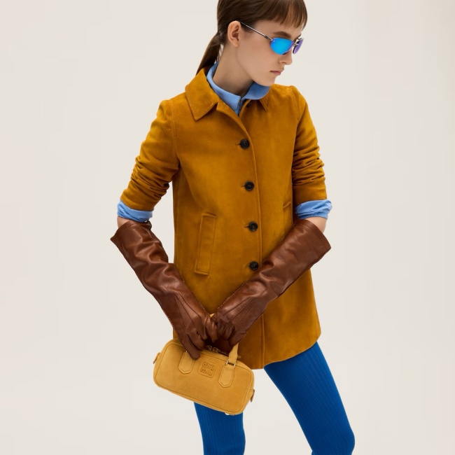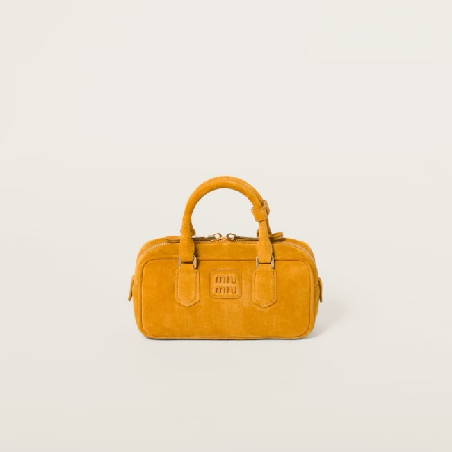 미우 미우 아르카디 패디드 스웨이드 탑 핸들 백 위스키 5BB142