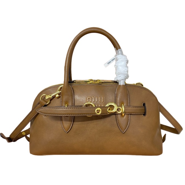 미우 미우 아방뛰르 나파 가죽 라지 탑 핸들 백 코냑 5BB168