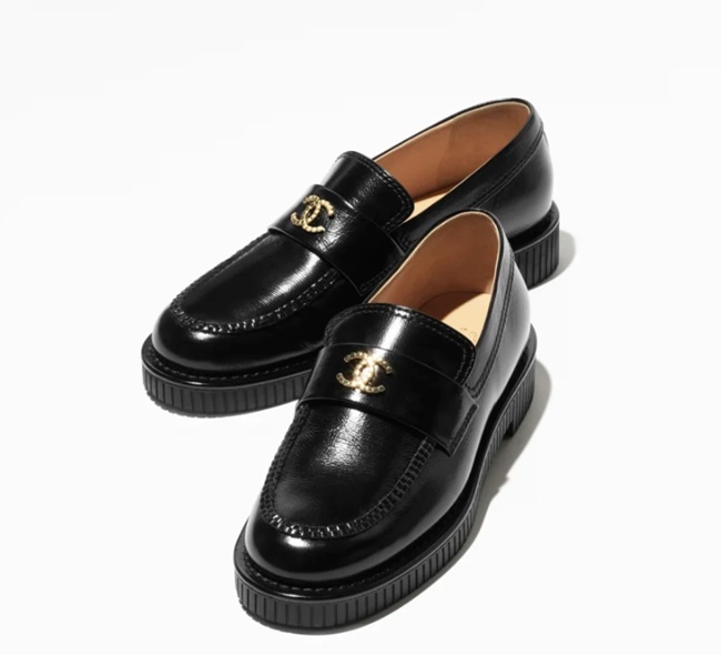 샤넬 로퍼 샤이니 크럼플드 카프스킨 블랙