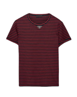 프라다 삼각 패치 스트라이프 코튼 티셔츠