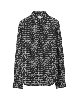 버버리 슬림핏 모노그램 모티프 스트레치 코튼 포플린 셔츠