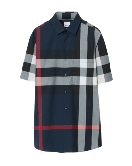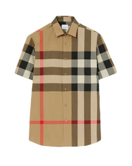 버버리 숏 슬리브 체크 코튼 포플린 셔츠