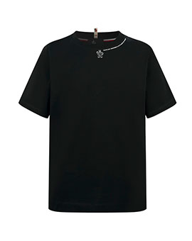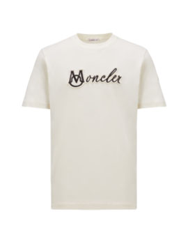 몽클레어 자수 바시티 로고 코튼 티셔츠