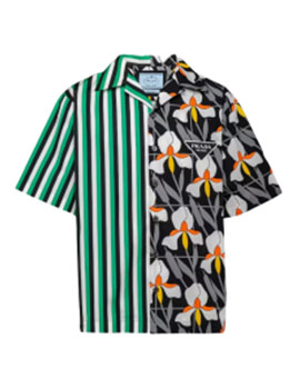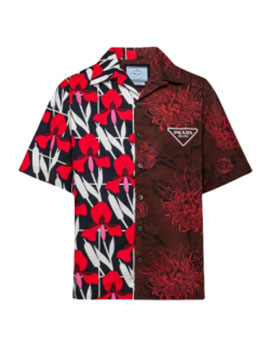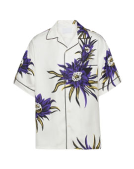 프라다 쇼트 플라워 슬리브 실크 셔츠