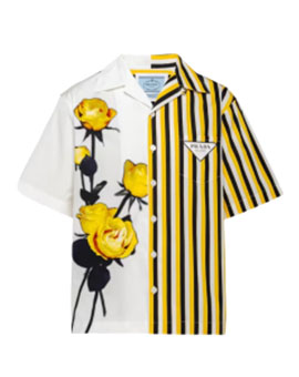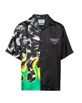 프라다 쇼트 슬리브 실크 트월 셔츠
